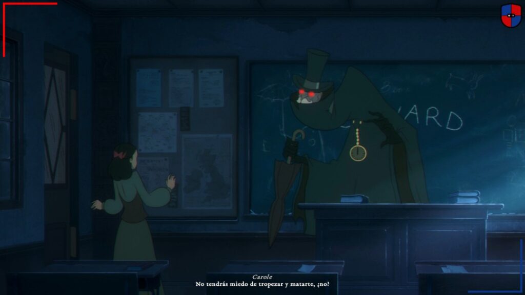Bye Sweet Carole se sustenta fundamentalmente en la exploración 2D, resolución de puzzles ambientales y secuencias de sigilo que denotan una clara inspiración en juegos de terror de aventura clásicos como Clock Tower. Por momentos, ya sea por algunas animaciones o la resolución de acertijos de corte pseudo aventura gráfica, también me recordó al mítico Dragon’s Lair. No obstante, el título se inclina más por la narrativa y el descubrimiento que en la resolución de puzzles. Aún así, los acertijos son numerosos y en general resultan bastante clásicos. A veces hace falta aplicar combinaciones, mientras que en otras es necesario utilizar objetos puntuales para desbloquear candados o interactuar con elementos del escenario accionando mecanismos o moviendo objetos.