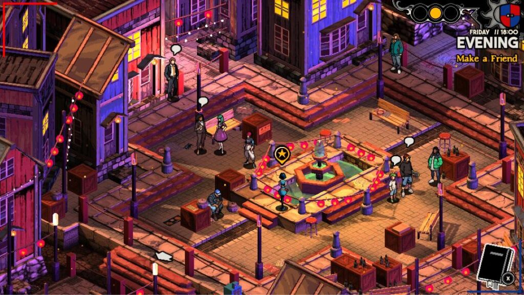 Faye es la protagonista de esta historia, pero no está sola. La acompañan Destin, Knute y Namako, un grupo de amigos de lo más peculiar que destaca por su personalidad estereotipada. Y no en balde podemos identificarlos fácilmente a un rol específico en lo jugable. Pero no son los únicos ya que podremos entablar amistad con otros 15 personajes. Lo mejor es que lejos de sentirse como simples arquetipos estudiantiles, tienen sus propios impulsos, ansiedades, contradicciones. Además, cuentan con un sentido del humor que incluso durante los diálogos más absurdos brindan credibilidad a su trama. Estas dinámicas sociales resultan igual de importantes que las misiones principales dejando más que claro que no se trata de un conjunto de NPC superficiales. Es más, la forma en que están escritos se mueven entre lo absurdo y lo melancólico revelando verdades emocionales inesperadas.