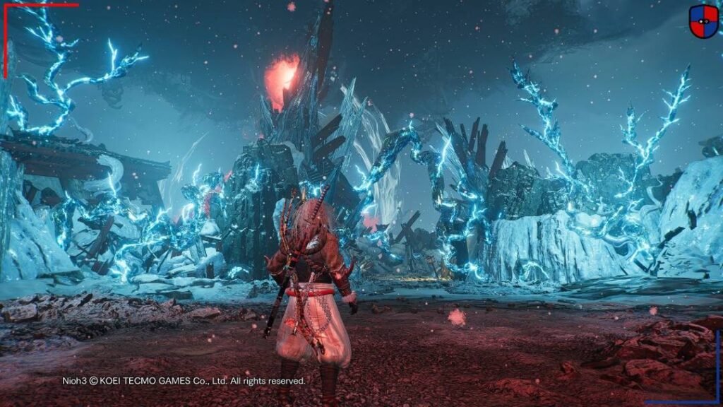 La dificultad sigue siendo parte vital, eso no cambió. La diferencia es que ahora hay más para hacer cuando un jefe nos tiene a mal traer. Esto no significa que Nioh 3 no presente situaciones frustrantes o batallas complicadas, de hecho el jefe del tutorial nos dará la bienvenida varias veces hasta que le agarremos la mano. Sin embargo, si la cosa se complica siempre podemos llamar a otro jugador para que nos ayude o invocar una versión de este controlada por la IA. Team Ninja ofrece una experiencia cooperativa tradicional y otra que se centra en la exploración, ambas desde el apartado ‘coop’ en cada santuario, y una menos invasiva que son las tumbas azules. Dicho de otro modo, podemos dejar una señal para ayudar para que el juego tome una copia de nuestro personaje con la configuración de equipo que teníamos en el momento de dejar la marca.