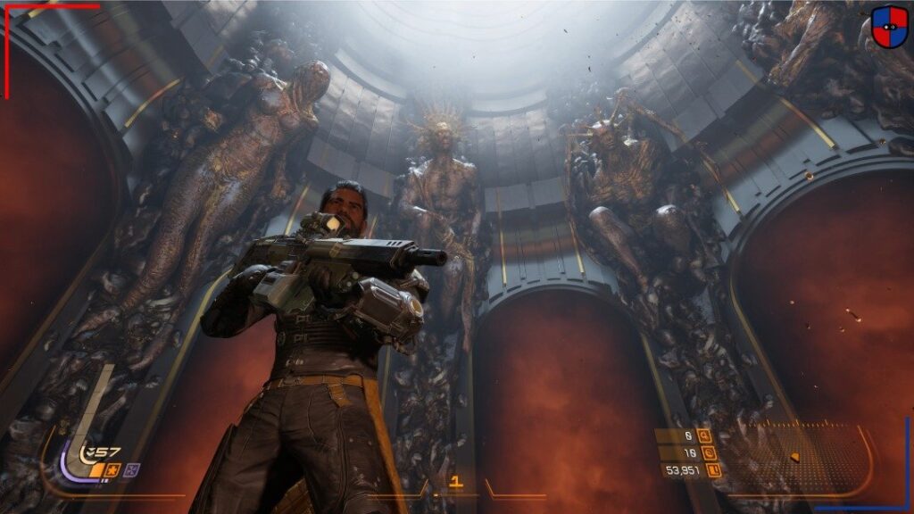 La forma en que el juego cuenta la historia es vital y, en lugar de estar fragmentada, avanza automáticamente con cada nuevo ciclo. Esta es una forma de paliar la frustración que conlleva morir contra un jefe o en una emboscada, puesto que al revivir vemos lo que va sucediendo con nuestros compañeros de tripulación. Acá es cuando la narrativa nos abraza, sembrando la semilla de la sospecha, y no nos suelta hasta ver los créditos. Más allá de las cinemáticas y los diálogos, también tenemos los registros de texto, audio y algunos hologramas que revelan poco a poco el destino de las otras expediciones y la naturaleza de Carcosa en sí. Sin ánimos de hacer spoilers, porque prefiero que cada quien lo descubra por su cuenta, me mantuvo al borde del sillón en todo momento. La historia no defrauda en absoluto.