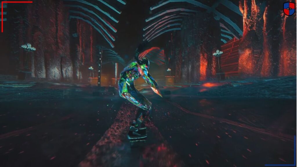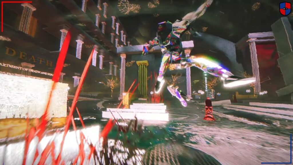 Describir cómo funciona el juego y reducirlo a cuestiones mecánicas no es algo realmente difícil: Somos un skater, concretamente un demonio de cristal, hacemos trucos como ollies y grinds que podemos encadenar para dar forma a combos. A veces tenemos que avanzar por circuitos esquivando obstáculos, y en otras circunstancias debemos sumar puntos encadenando piruetas específicas en un orden determinado. Es un juego que resulta muy técnico en su ejecución pero, al mismo tiempo, nada de eso importa. Y no es que mecánicamente no esté logrado, sino todo lo contrario dado que es sorpresivamente profundo y complejo en ese apartado. Mucho más de lo que puede aparentar a primera vista. No obstante, ese no es el gancho.