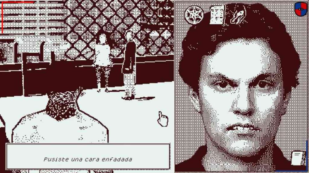 El título presenta un apartado gráfico de estilo ditherpunk, una estética visual de tramado monocromático que variaría entre colores sólidos acorde a lo que acontece en pantalla. Por cierto, le sienta muy bien. En más de una ocasión este estilo aporta el toque perfecto para la distorsión de las imágenes en pantalla haciendo que se vean más siniestras de lo que ya son. Respecto al audio, cuenta con un set bastante grande de melodías, algo acotadas en duración, pero igual de tenebrosas que su estética. No dicen mucho, pero cumplen con la situación que representan. A decir verdad, no son más que una excusa para no estar completamente en silencio leyendo los cuadros de texto en cada mitad de la pantalla.